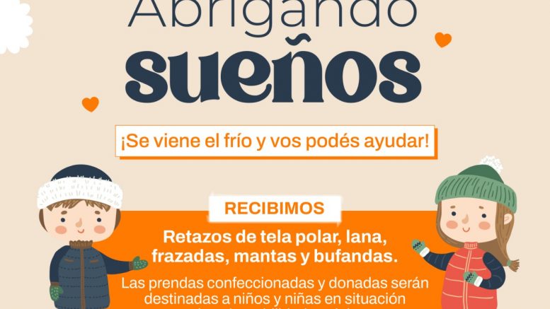 La Municipalidad de Berazategui impulsa nuevamente la Campaña Abrigando Sueños, con el objetivo de recolectar ropa de abrigo, retazos de tela polar y lana para confeccionar bufandas y mantas que se enviarán a instituciones y establecimientos educativos para que sean distribuidas a niños y niñas del distrito en situación de vulnerabilidad social.