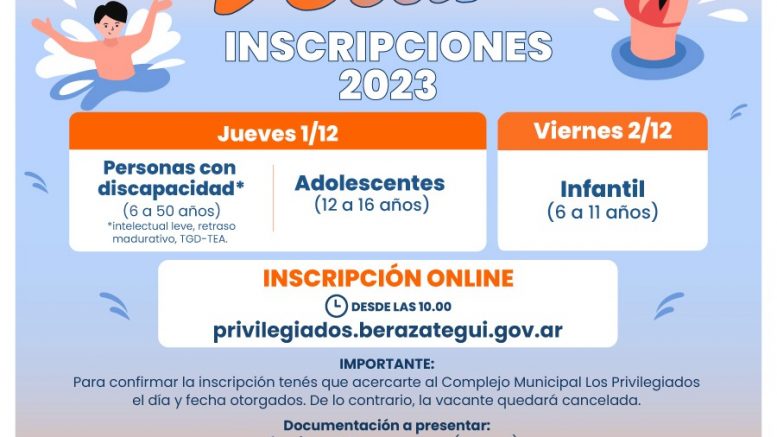 La Municipalidad de Berazategui -a cargo del intendente Juan José Mussi- abrió la inscripción a las colonias municipales que se desarrollarán durante las vacaciones de verano 2023 en el Complejo Municipal Los Privilegiados.