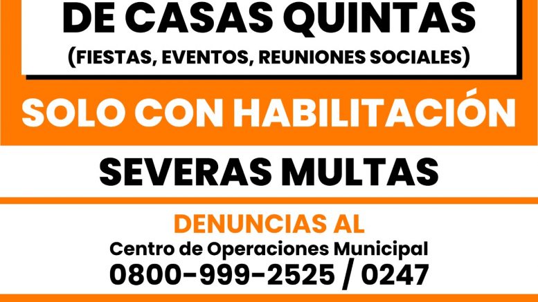 El incumplimiento de los mencionados requisitos supondrá sanciones. Para realizar denuncias, las y los vecinos tienen a disposición la línea 0800-999-2525/0247, perteneciente al Centro de Operaciones Municipal (COM).