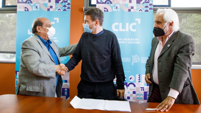 En el marco del Programa de Apoyo a la Creación de Centros Locales de Innovación y Cultura (CLIC), impulsado por el Gobierno de la provincia de Buenos Aires, el intendente Juan José Mussi firmó un convenio con el ministro de Producción, Ciencia e Innovación Tecnológica bonaerense, Augusto Costa; y el rector de la Universidad Nacional Arturo Jauretche (UNAJ), Ernesto Villanueva, para la apertura de uno de estos espacios en Berazategui. El encuentro contó con la participación del subsecretario de Ciencia, Tecnología e Innovación bonaerense, Federico Agüero; y el secretario municipal de Cultura y Educación, Federico López.