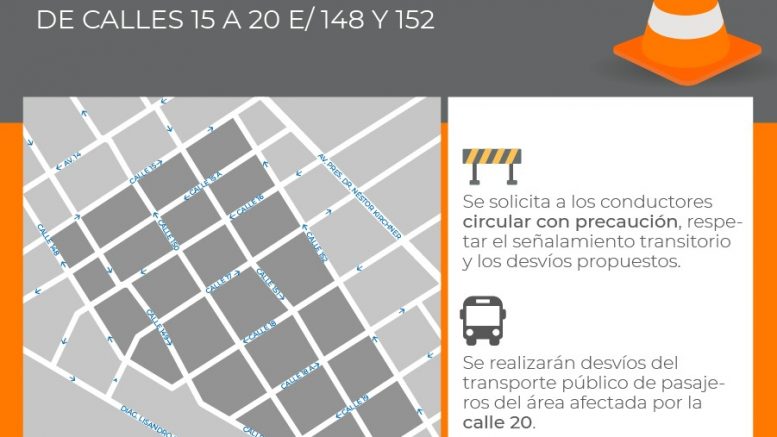 Asimismo, se comunica que se realizarán desvíos del transporte público de pasajeros del área afectada, únicamente por la calle 20.