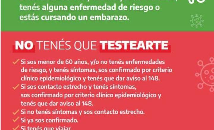 Asimismo, quienes no formen parte de estos grupos de riesgo y presenten 2 o más síntomas compatibles con coronavirus -fiebre (mayor a 37.5 °C), tos, dolor de garganta, dolor muscular, pérdida brusca de olfato o gusto, dificultad respiratoria, cefalea, diarrea y/o vómitos y congestión nasal-, serán confirmados como positivos por criterio clínico-epidemiológico. En este sentido, la Subsecretaria advierte que “también ellos contarán con la asistencia médica correspondiente en caso de ser requerida, porque igualmente son pacientes COVID”.