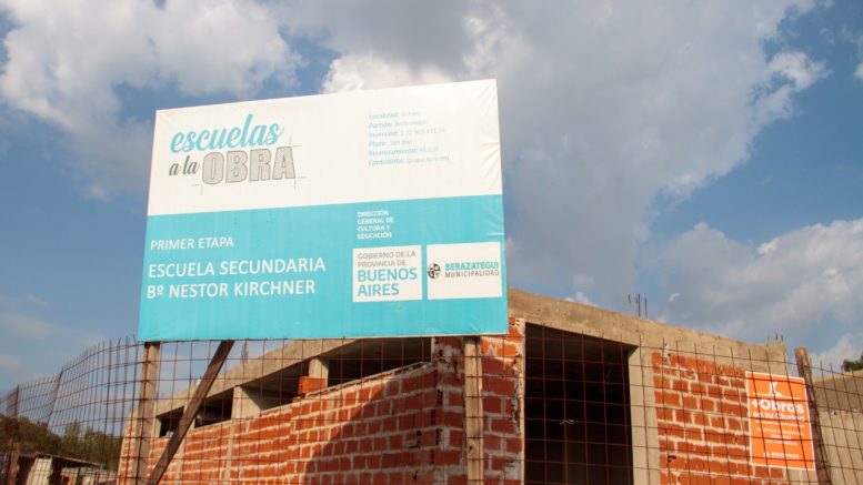 Avanza la construcción de cuatro establecimientos educativos nuevos en Berazategui. Se trata de las Escuelas Primaria y Secundaria Nº 57 -del Centro Agrícola El Pato- y de los Jardines de Infantes Nº 906 -del barrio Villa Mitre- y 952 -de CGT-.
