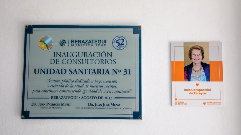 Se impuso el nombre “Inés Campostrini de Pereyra” al CAPS Nº 31, ubicado en la calle 12 entre 106 y 107, del barrio San Pedro. La ceremonia fue encabezada por el intendente de Berazategui, Juan José Mussi; el diputado nacional Julio Pereyra -hijo de la homenajeada-; y el Jefe comunal de Florencio Varela, Andrés Watson.
