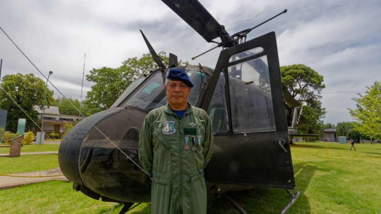 “Este móvil es un Bell UH-1H norteamericano, un modelo fundamental en la guerra de Vietnam, que en la década del ’70 fue adquirido en Argentina para realizar distintas tareas”, destacó San Miguel. Y agregó: “En Malvinas este modelo fue esencial para el suministro de comida, municiones, misiones de rescate y atención sanitaria. Ese espacio no podía transitarse con camiones, así que fue el transporte ideal para que lográramos ejecutar todas las acciones necesarias. Tiene capacidad para transportar a 12 personas equipadas en 2.20 horas de vuelo”.