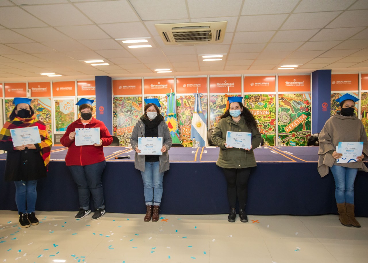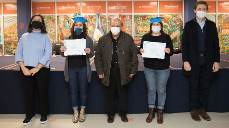 Tras realizar el Curso Micro-Finanzas del Fondo Nacional de Capital Social (FONCAP), emprendedores berazateguenses recibieron sus certificados por parte del intendente Juan José Mussi y de la secretaria de Articulación de Política Social del Ministerio de Desarrollo Social de la Nación, Erika Roffler, entre otros funcionarios, en un emotivo acto que se desarrolló en el Edificio municipal. Mediante esta capacitación, los trabajadores y trabajadoras autogestionados accedieron –mediante encuentros virtuales-  a importantes herramientas para mejorar la administración de sus emprendimientos.