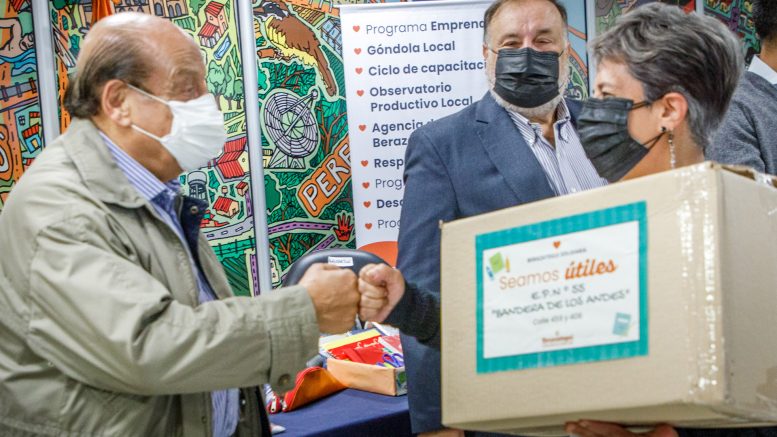 Dentro de las campañas solidarias de Responsabilidad Social Empresarial y Seamos Útiles de la Secretaría de Trabajo, el intendente Juan José Mussi; junto a integrantes del Honorable Consejo Escolar (HCE) y de la Jefatura Distrital; directivos de escuelas; emprendedores del Programa de Voluntariado VolBer y empresarios locales, entregó 1400 kits escolares y 3000 barbijos a 10 Escuelas Primarias públicas y a representantes del Programa Municipal de Alfabetización.