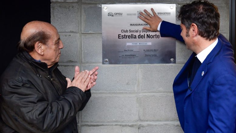 El gobernador de la provincia de Buenos Aires, Axel Kicillof; y el intendente de Berazategui, Juan José Mussi, encabezaron este martes la inauguración del Club Social y Deportivo Estrella del Norte, en Plátanos, junto a la ministra de Hábitat y Desarrollo Urbano, Silvina Batakis; y la directora ejecutiva del Organismo Provincial de Integración Social y Urbana (OPISU), Romina Barrios.