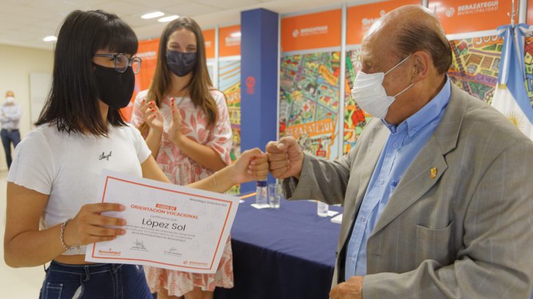 La Municipalidad de Berazategui hizo entrega de los certificados del Curso de Orientación Vocacional dictado por la Subsecretaría de Juventudes, que este año decidió hacerlo en forma virtual debido a la pandemia de COVID-19, llegando a 16 Escuelas Secundarias públicas, 12 Secundarias privadas, 4 Escuelas Técnicas y el Centro Educativo Nivel Secundario (CENS) N° 451. El acto se desarrolló en la Sala de Conferencias del Edificio Municipal, con la participación del intendente Juan José Mussi.