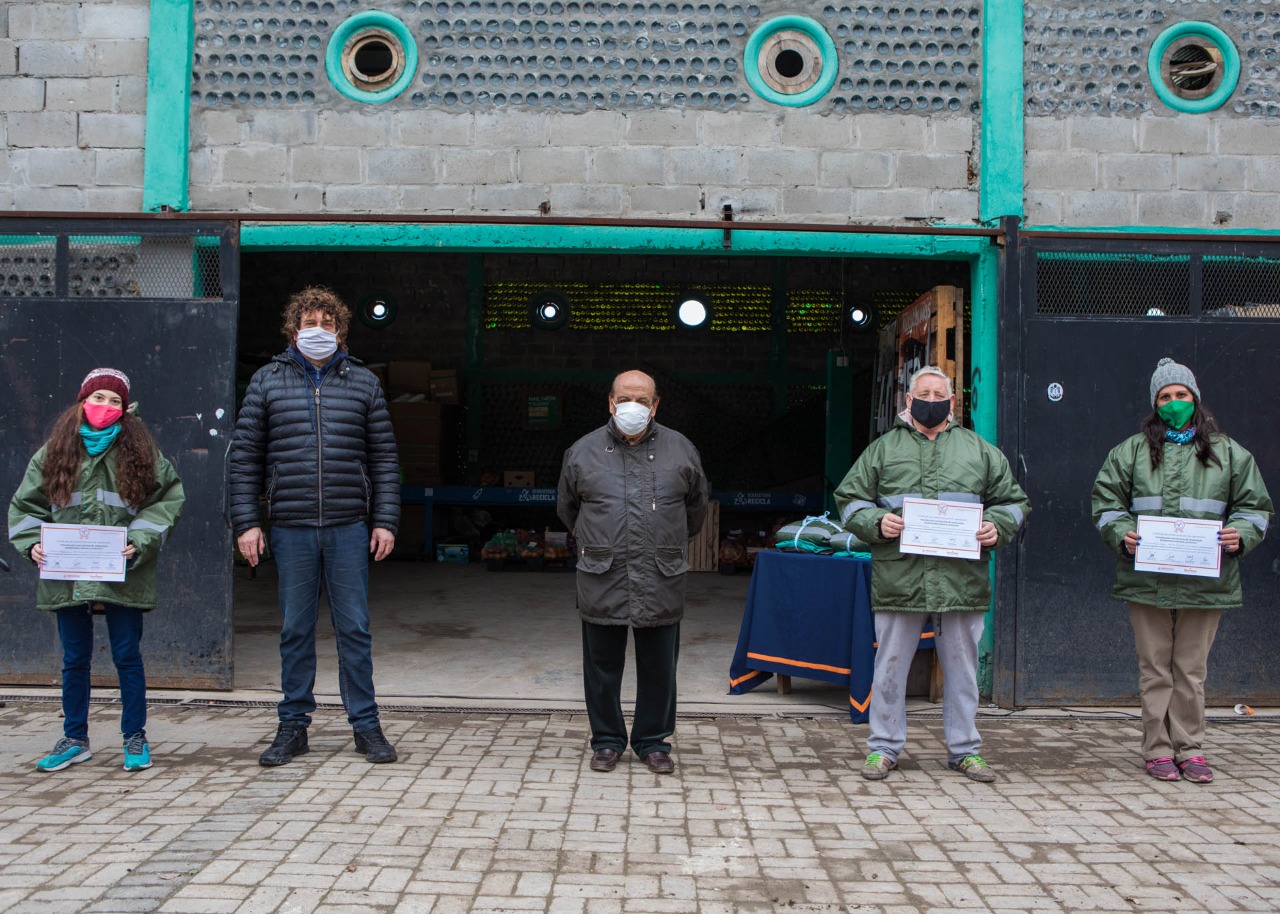 El intendente de Berazategui, Juan José Mussi, visitó el proyecto de compostaje que se lleva adelante en el Centro de Acopio, Selección y Reciclado N° 1 de Río Encantado, donde entregó diplomas a 7 trabajadoras que realizaron un curso de capacitación sobre las diferentes técnicas en la actividad y unos 220 kits de indumentaria (conformados por un pantalón, una remera y una campera) para todos los integrantes de esta iniciativa del Programa Berazategui Recicla. También, felicitó a los trabajadores del lugar y anunció que compartirá esta propuesta local con el Ministerio de Ambiente de la Nación.
