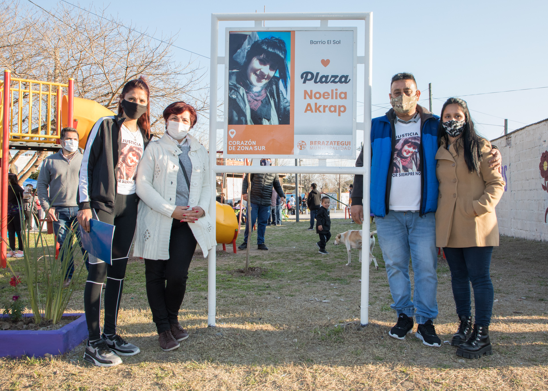En la plaza Noelia, que lleva ese nombre en homenaje a Noelia Akrap (vecina del barrio El Sol víctima de femicidio en el año 2014), Mussi expresó: “Quiero agradecer a quienes hicieron posible este espacio. En todos los lugares de la plazoleta va a estar Noelia y seguramente ahora nos estará mirando desde el cielo, diciendo ‘gracias vecinos’. Este es el pueblo solidario de Berazategui”.