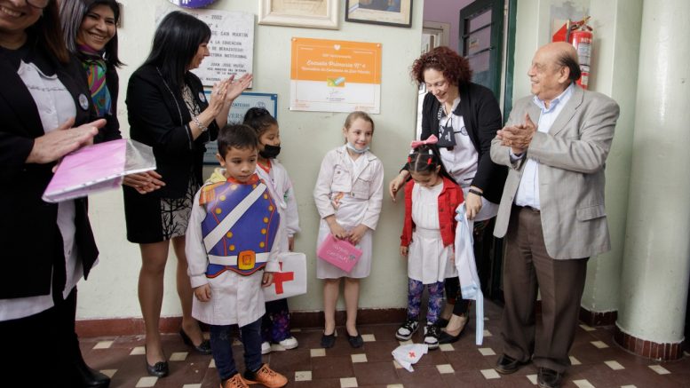 Se celebraron los 120 años de la Escuela Primaria Nº 4 “Remedios de Escalada de San Martín”, ubicada en Av. Calchaquí Nº 610, del barrio San Carlos de Berazategui. Juan José Mussi participó de los festejos, acompañado por la comunidad educativa, y le obsequió un proyector y una computadora a la institución.