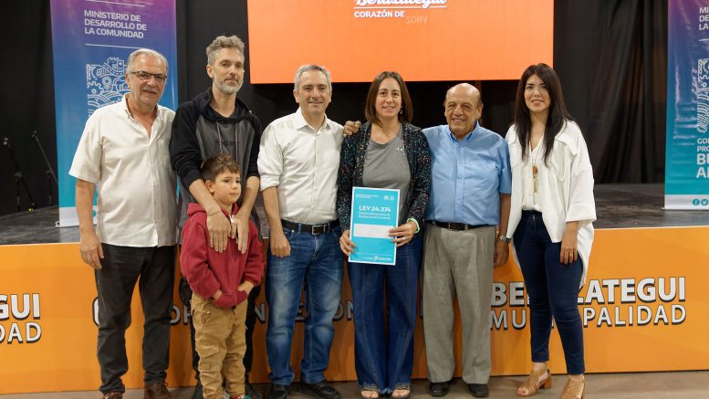 246 familias de Berazategui recibieron de manera gratuita sus escrituras de propiedad -Ley 24.374-, en un acto encabezado por el intendente Juan José Mussi y el ministro bonaerense de Desarrollo de la Comunidad, Andrés Larroque. Del total de escrituras entregadas, 143 fueron de consolidaciones y 103 de regularizaciones.