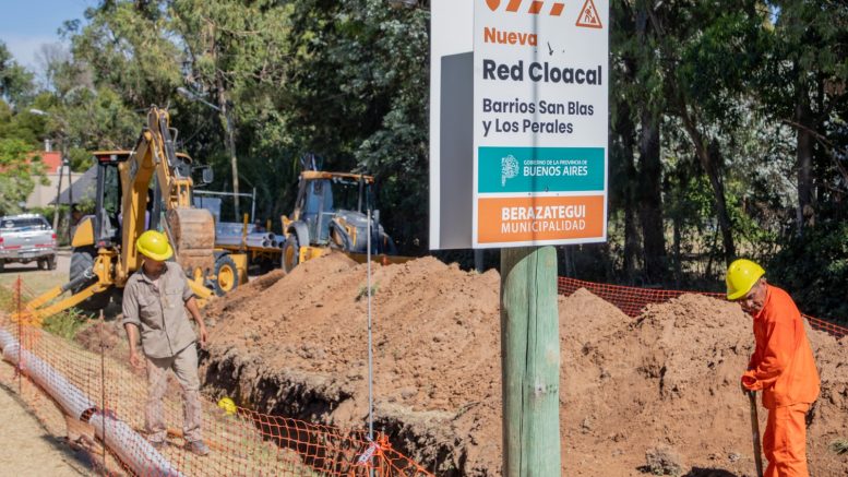 Avanzan las obras de extensión de la red cloacal de Ranelagh, que benefician a más de 2 mil hogares. El intendente de Berazategui, Juan José Mussi; y el ministro bonaerense de Infraestructura y Servicios Públicos, Gabriel Katopodis, recorrieron estos trabajos, que son financiados por los Gobiernos provincial y municipal.