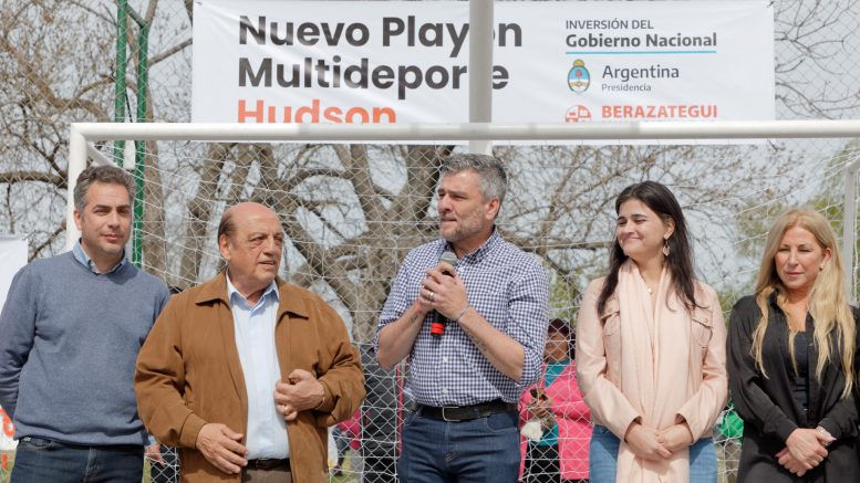 Se inauguraron playones municipales multideporte en las localidades de Gutiérrez (calle 415 e/ 452 y 453) y Hudson (166 y 66), con la presencia del ministro de Desarrollo Social de la Nación, Juan Zabaleta; el intendente de Berazategui, Juan José Mussi; y la secretaria de Desarrollo Social y Comunitario, Recreación, Turismo y Deportes municipal, María Laura Lacava.