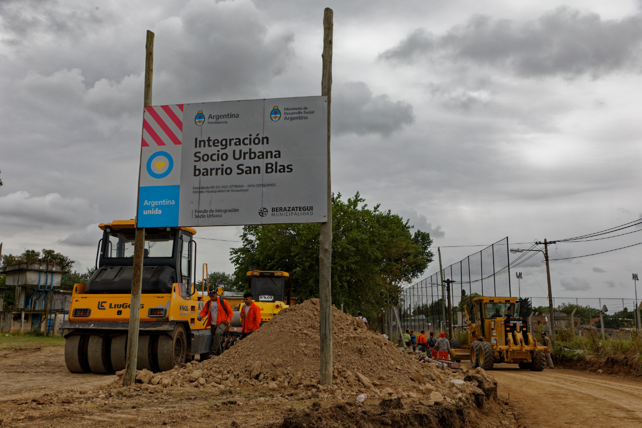 A través de un convenio firmado con el Ministerio de Desarrollo Social de la Nación, se están llevando adelante los trabajos para la transformación socio-urbana del barrio San Blas. El intendente de Berazategui, Juan José Mussi, visitó las obras que, en esta primera etapa, contemplan el acceso al agua potable y a la red cloacal, alumbrado público, pavimentación, desagües pluviales y el completamiento del entubado bajo la calle 128 hasta el Arroyo Las Conchitas.