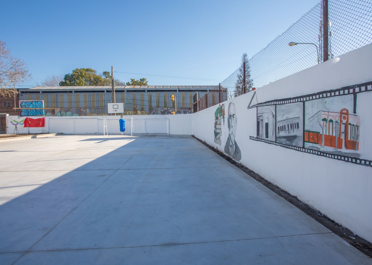 El nuevo patio de este histórico establecimiento educativo de Berazategui tiene 1.600 metros cuadrados de hormigón armado, un espacio verde, cancha de fútbol, vóley y básquet.