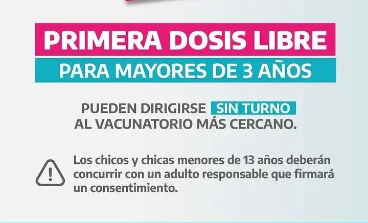 VACUNACIÓN COVID-19: PRIMERA DOSIS LIBRE PARA MAYORES DE 3 AÑOS